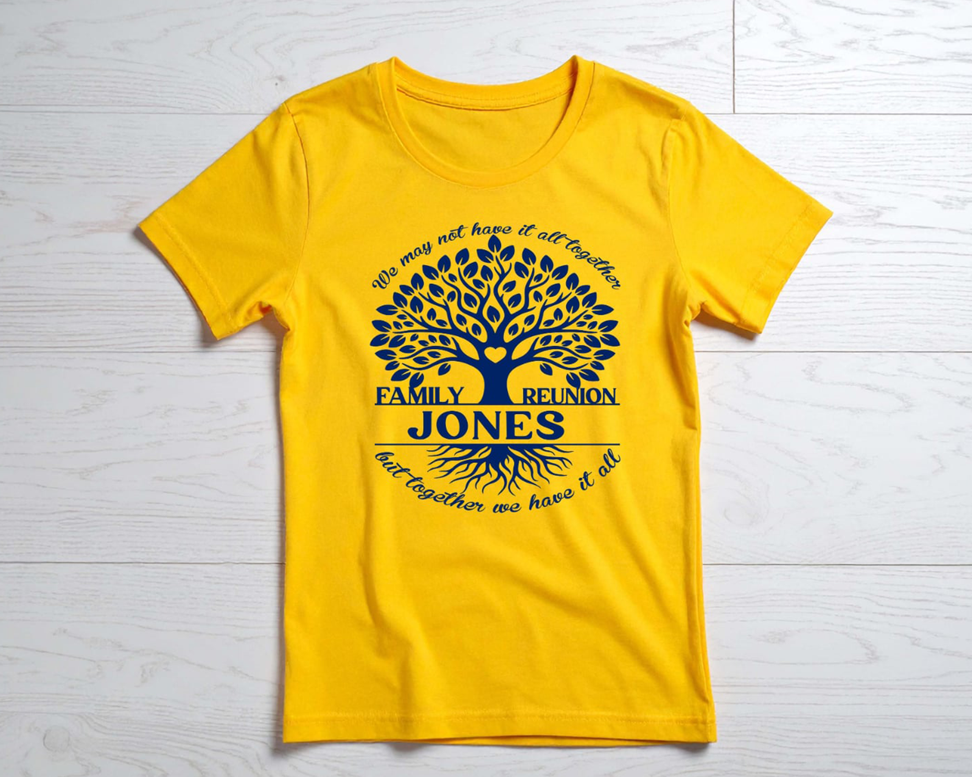 This bright golden yellow shirt is designed for everyone joining the celebration—it’s a joyful, unified look that honors togetherness while letting the elders stand out in royal blue.